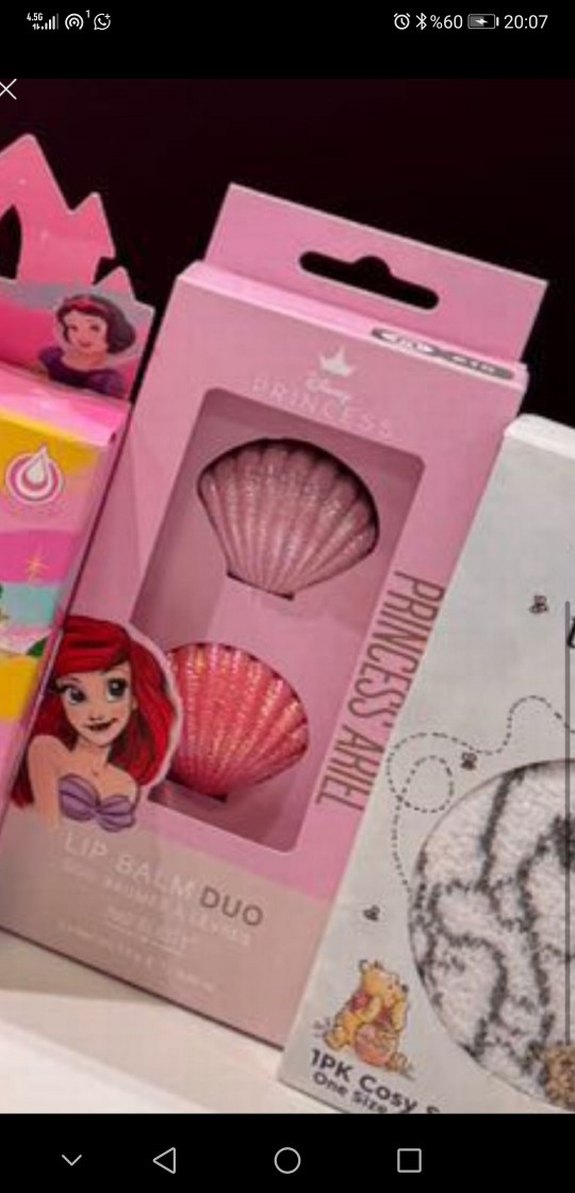 Disney Pembe pastel renkte, iki deniz kabuğu şeklinde dudak parlatıcısı içeren DUO set. Dudaklara yumuşak parlaklık ve nem sağlar.