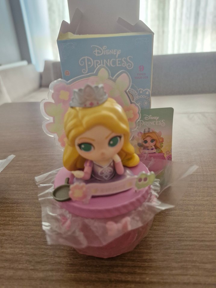 Disney Prenses bebeği, pembe elbisesi ve küçük tacıyla pastel renklere sahip. Detaylı yüz hatları ve aksesuarları olan kompakt bir koleksiyon figürü takı kutusu #miniso #disney #disneyprenses #rapunzel
