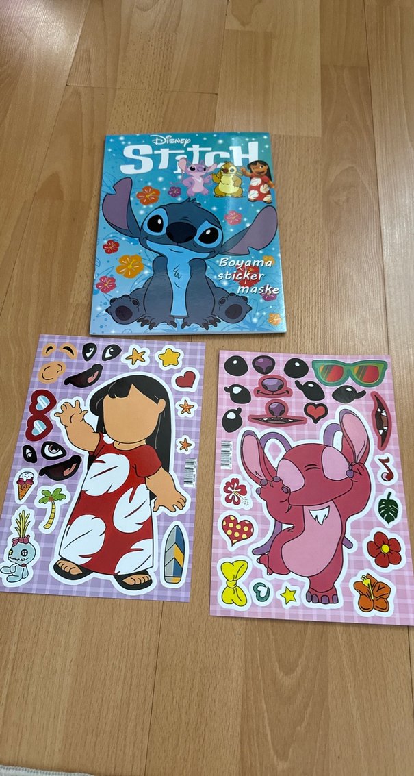 Disney Stitch kitabı, boyama sayfaları, stickerlar ve maskeler içerir. Çocuklar için renkli ve eğlenceli aktiviteler sunar. Sticker ve maske hediyelidir kitabın arka kapağı maskedir 8 yaprak toplamda 16 sayfa boyamadan oluşur kulllanılmamıştır 2 ade tak çıkar sticker sıfırdır