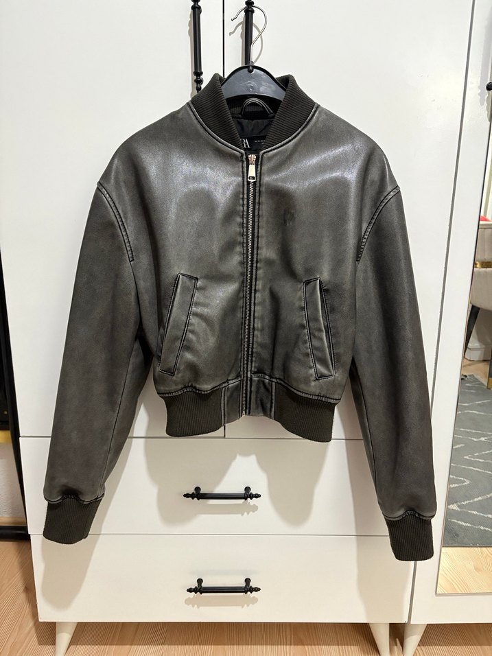 Dıstressed Görünümlü Suni Deri Bomber Ceket