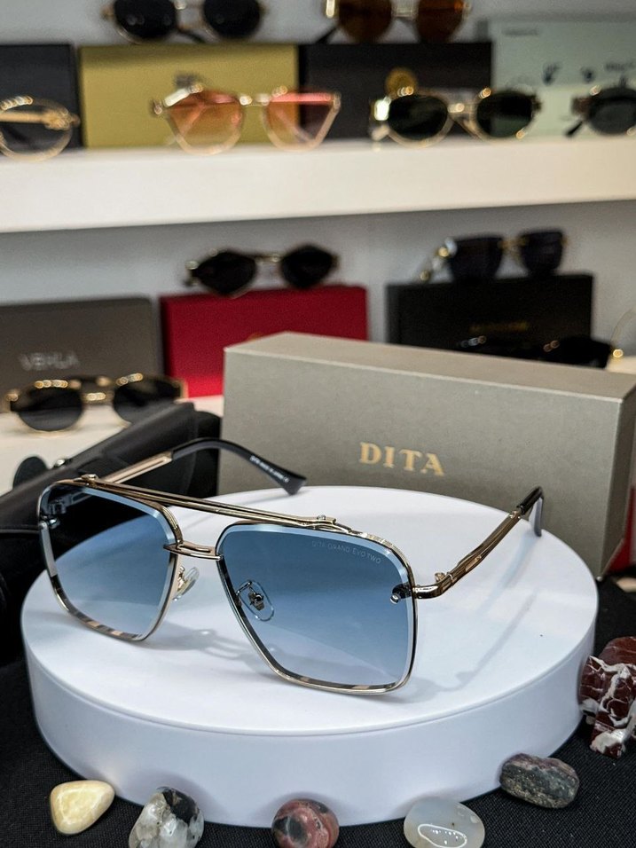 Dita marka, mavi degrade camlı ve gri çerçeveli klasik erkek güneş gözlüğü. Sokak stiline uygun, trend ve rahat bir görünüm sunar.