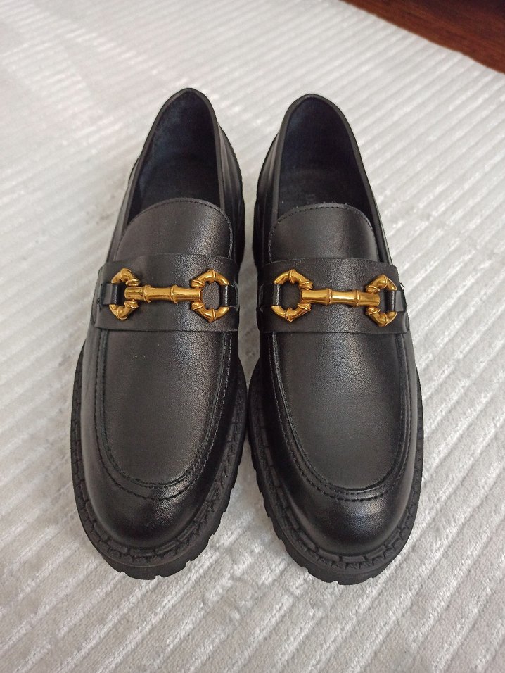 Siyah deri kadın loafer. Hiç kullanılmadı.