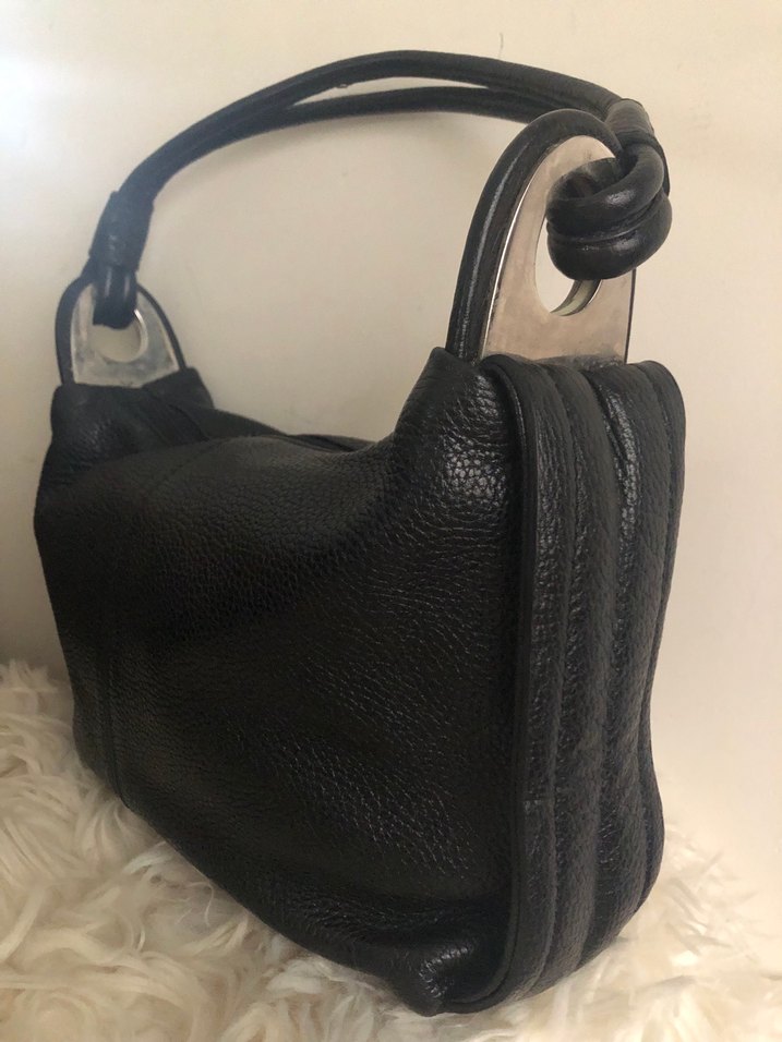 DİVARESE. Deri,elde ve omuzda kullanabilirsiniz. Yükseklik 24 cm eni 37 cm taban genişliği 6 cm. Fotoğrafta gösterdiğim gibi demir kısımları kusurludur. Başka hiçbir sorumu yoktur