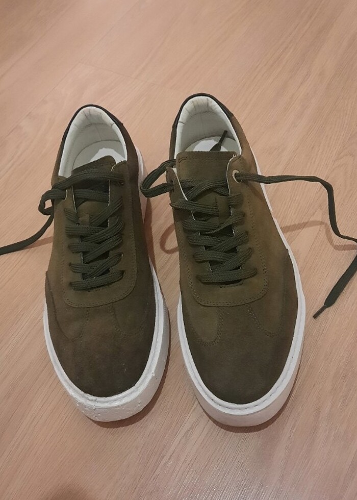 Divarese marka, haki renk ayakkabı. Az kullanıldı. Süet. Ürünün ön kısmında sadece ufak defo mevcuttur görselde de görünmektedir.