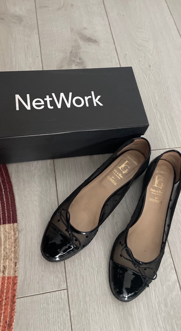 Parlak siyah, blok topuklu kadın babetler, baskılı tasarım ve kauçuk malzeme ile. NetWork marka kutusunda. Ofis için şık ve trend görünümlü.