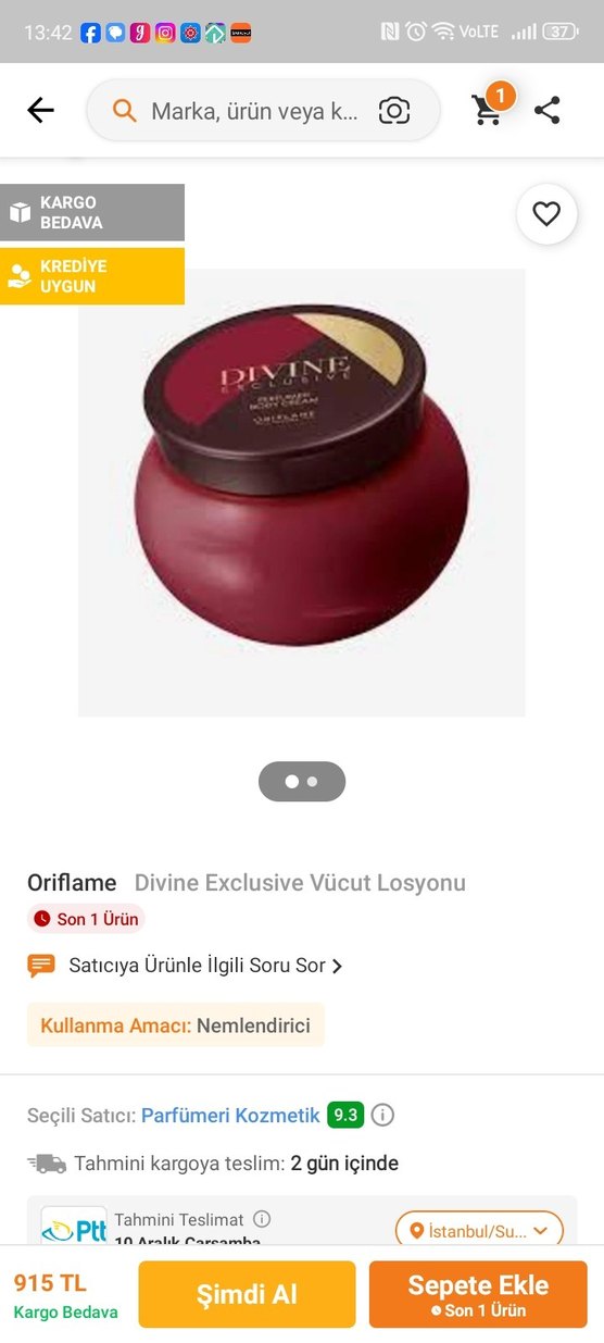 Oriflame'in Divine Exclusive parfümlü vücut kremi, cildi zengin şekilde nemlendirir ve hoş bir koku sağlar.