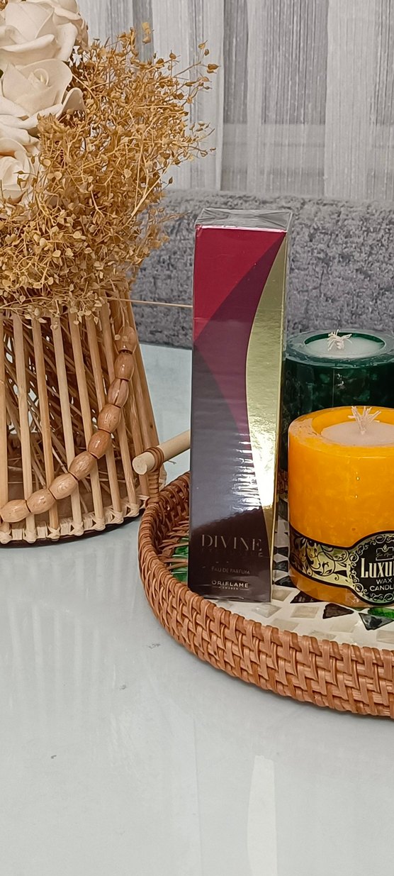 Divine Eau De Parfum, derin kırmızı ve altın tonlarıyla şık bir tasarıma sahip. Gualfame markasının kadın parfümü, uzun ve ince kutuda sunuluyor.