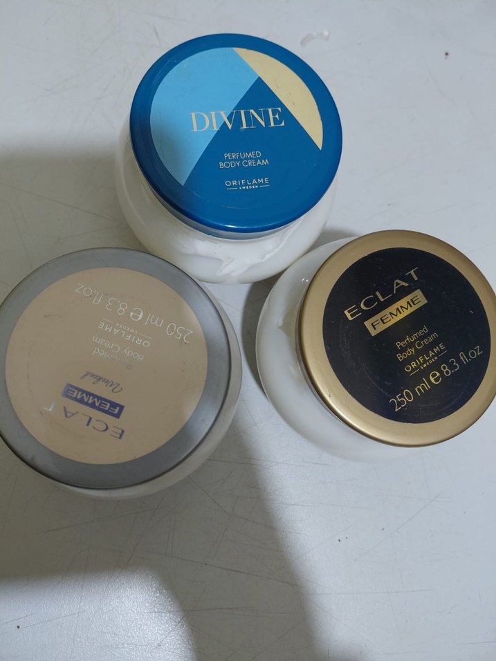 Oriflame Divine ve Eclat parfümlü vücut kremleri, cildi nemlendirir ve hoş koku bırakır. Her biri 250 ml yoğun bakım sağlar.
