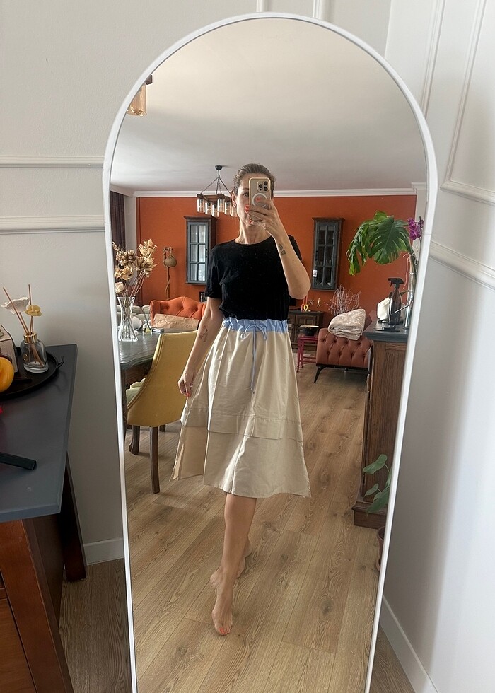 Günlük kullanımda hayat kurtarıcı üstü tshirt altı ketenimsi kumaştan. 40 beden ama 42 bedene de uyumlu