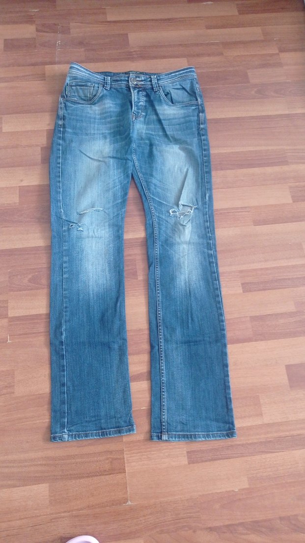Parlak mavi renkte, diz kısmında yırtık detaylı, midi boy, regular fit kadın kot pantolon. Günlük kullanıma uygun rahat bir kesime sahiptir.