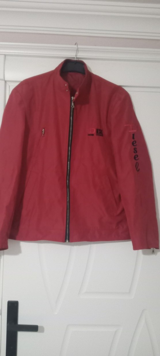 Dizaynlı Kırmızı Fermuarlı erkek mont