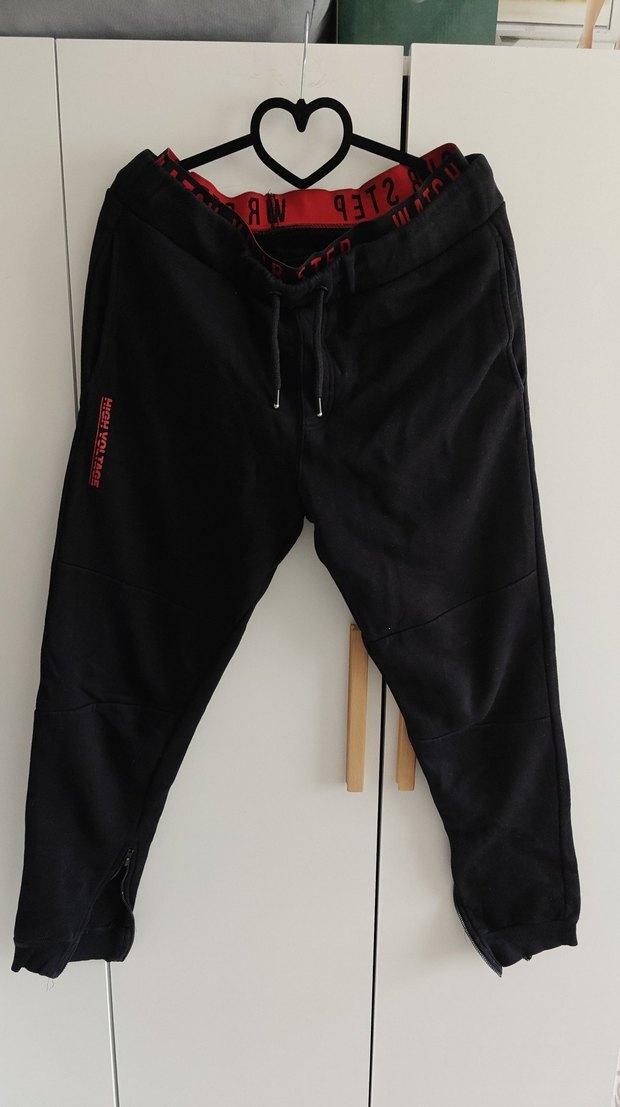 Siyah, fermuarlı cepli ve bağcıklı, yumuşak ve sıcak kumaştan yapılmış erkek spor eşofman altı. ♂️