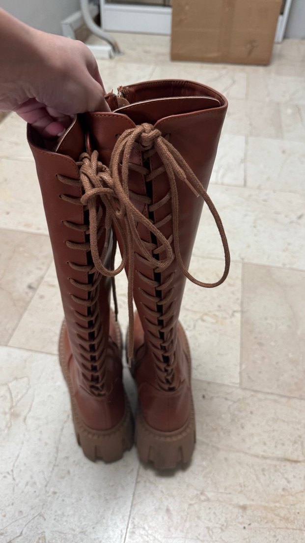 Dizüstü Kahverengi Deri Stiletto Çizme