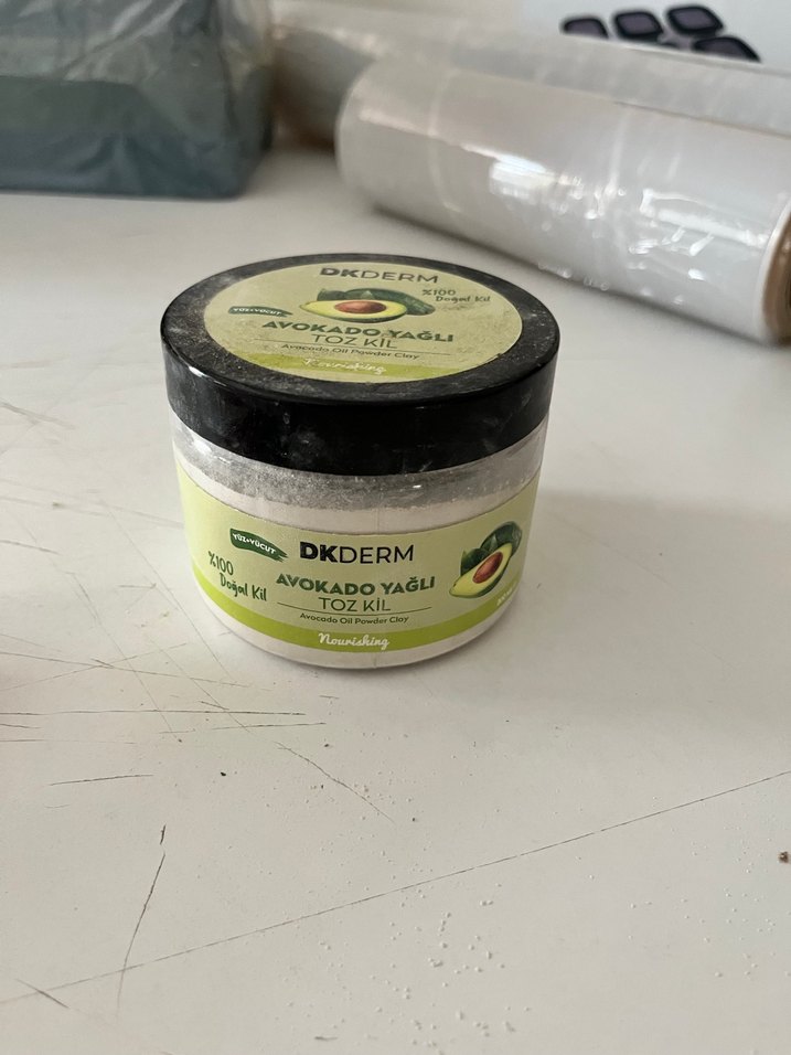 DKDERM avokado yağlı toz kil, cildi nazikçe temizleyip besler. Doğal avokado yağı içerir, cildin yumuşak kalmasına yardımcı olur.