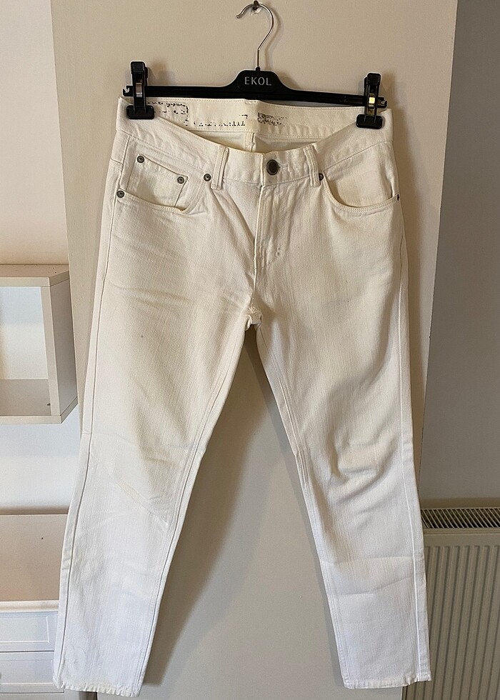 Orijinal ve Amerikadan alınmıştır. Biraz klasik sararma var beyazlatıcıyla yıkanırsa yeni gibi olur. Ölçüler: Bel 39 cm Belden paça boyu 99 cm Ağ kısmından paça boyu 74 cm Baldır 26 cm Paça 16 cm