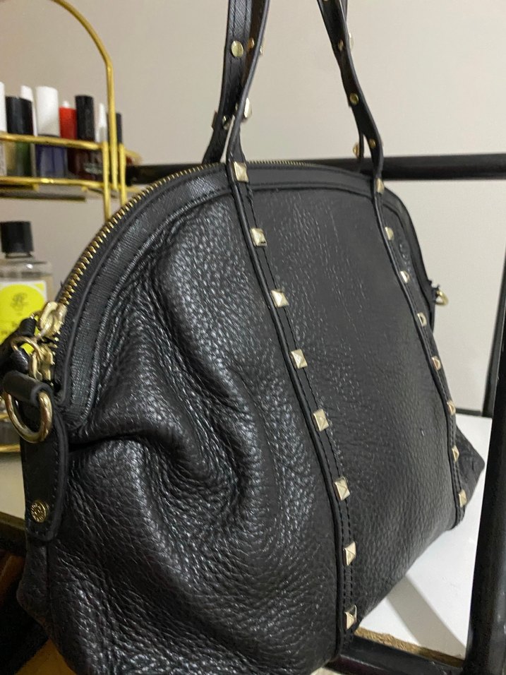 Orjinal üründür Tok siyah deriden yapılmış, tokalı askılara sahip desenli DKNY kadın çantası. Minimalist ve rock punk tarzını yansıtır, günlük kullanıma uygundur. Yer yer ufak dökülme mevcuttur