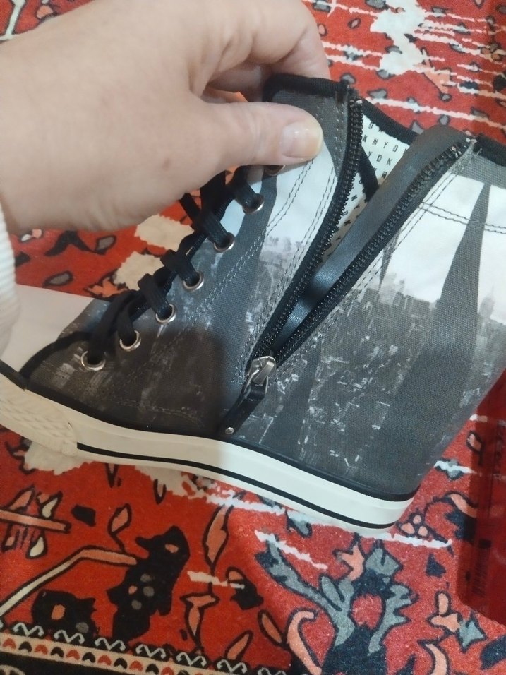 Desenli bağcıklı gizli topuk spor ayakkabı, ve kauçuk tabanla sokak stili ve rock punk havası sunar.