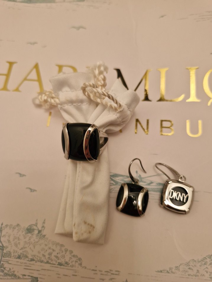 DKYN MARKA Siyah Kadın KÜPE,YÜZÜK SET