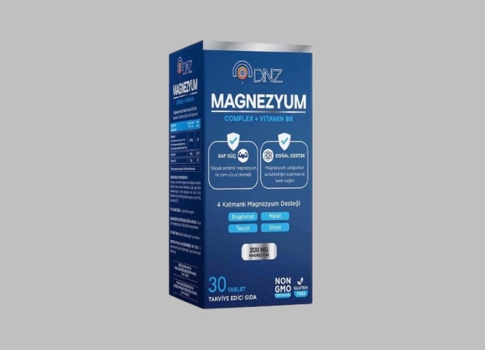 DNZ Magnezyum Kompleksi + Vitamin B6, yüksek emilimli dört kaynaktan magnezyum ile vücuda destek sağlar. GMO içermez, gluten free.