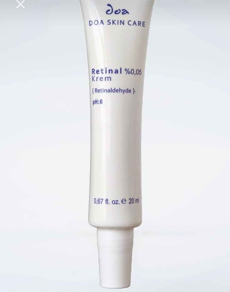 DOA Skin Care Retinal %0,05 içeren, pH 6 olan 20 ml'lik krem tüpü ile nazik cilt bakımı sağlar.