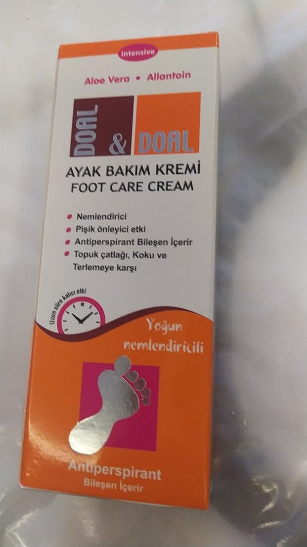 Doal Ayak Bakım Kremi, nemlendirici Aloe Vera ve Allantoin içerir. Terlemeye ve kötü kokuya karşı antiperspirant etkilidir, topuk çatlaklarını onarır.