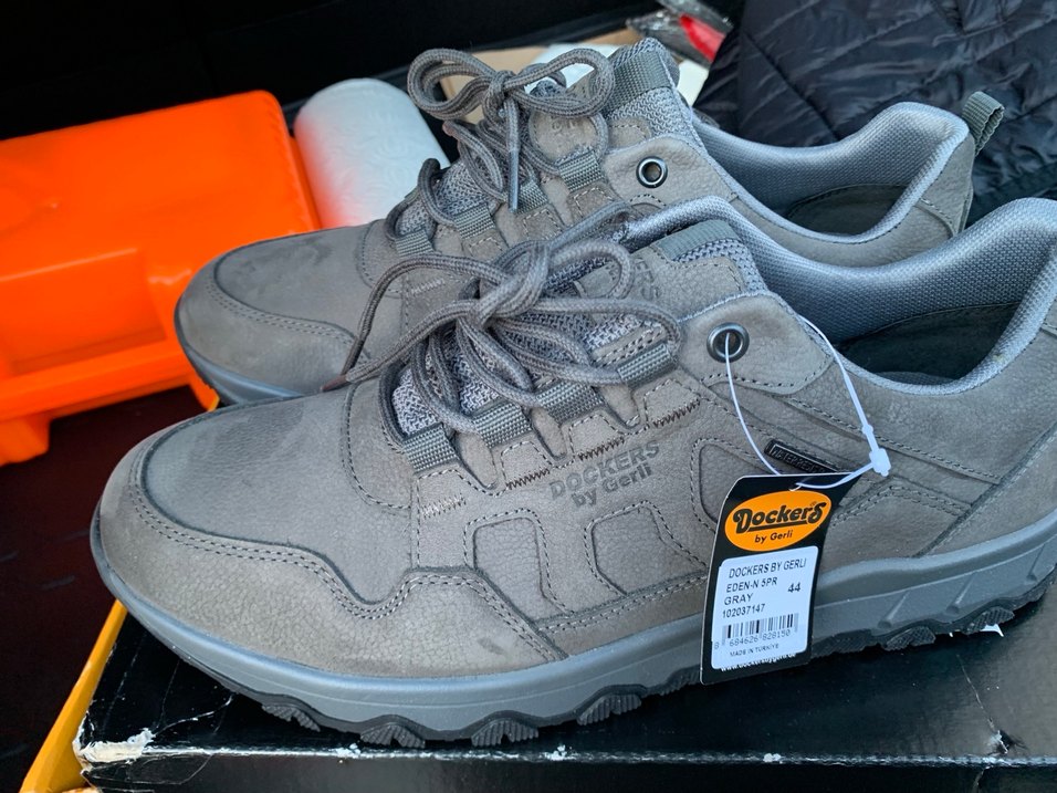 Dockers marka, gri renkte, bağcıklı ve baskılı desenli erkek outdoor ayakkabısı. Kauçuk tabanlı, şık ve rahat sokak stili için uygundur. Hakiki deri suya dayanıklı model. Hiç kullanılmamıştır