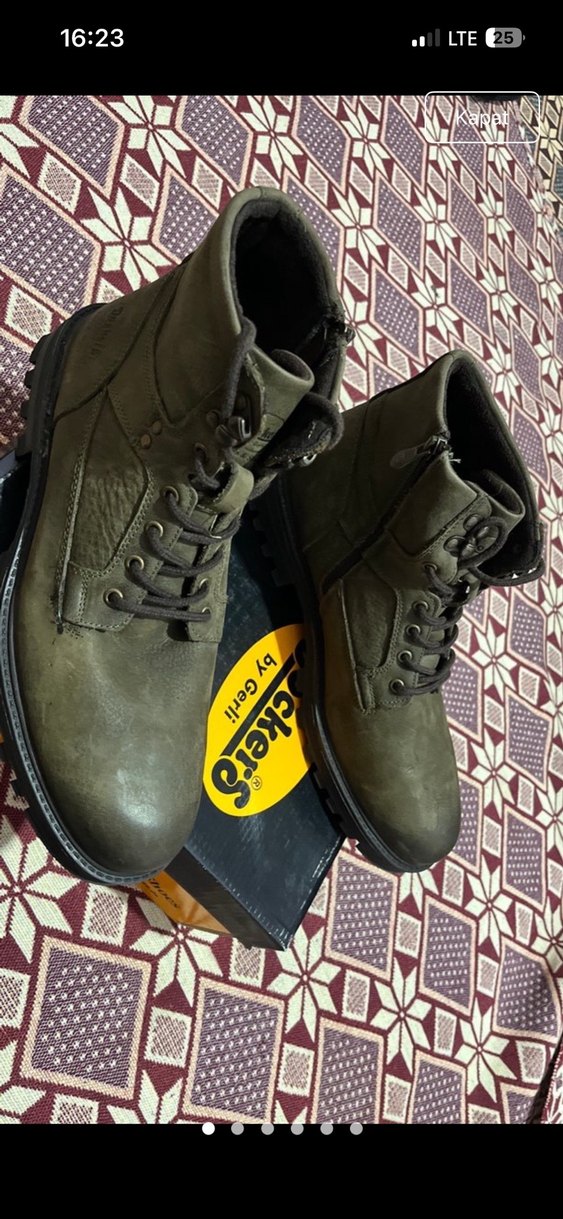 Gri ve kahverengi kamuflaj desenli, kemer detaylı erkek bot. Kauçuk malzemeden, günlük kullanım ve sokak stiline uygun. "by Gerl" markalı.