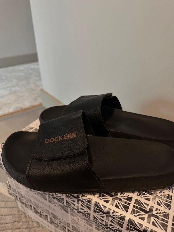Dockers markalı siyah erkek terlik, dayanıklı kauçuk malzemeden kusuru yoktur az giyildi