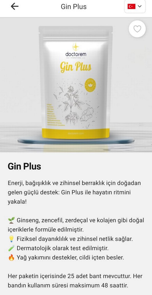 Doctorem Gin Plus bant ; ginseng, zencefil, zerdeçal ve kolajen gibi doğal içeriklerle formüle edilmiştir. Enerji, bağışıklık ve zihinsel berraklık sağlar. Dermatolojik olarak test edilmiştir.