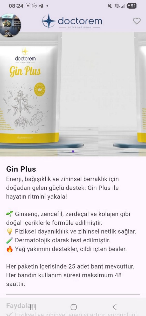 Doctorem Gin Plus ginseng, zencefil, zerdeçal ve kolajen gibi doğal içeriklerle formüle edilmiştir. Enerji, bağışıklık, kas onarımı yapar. Paket icinde 25 adet bulunmaktadır. 48 saatte bir değiştirilir.