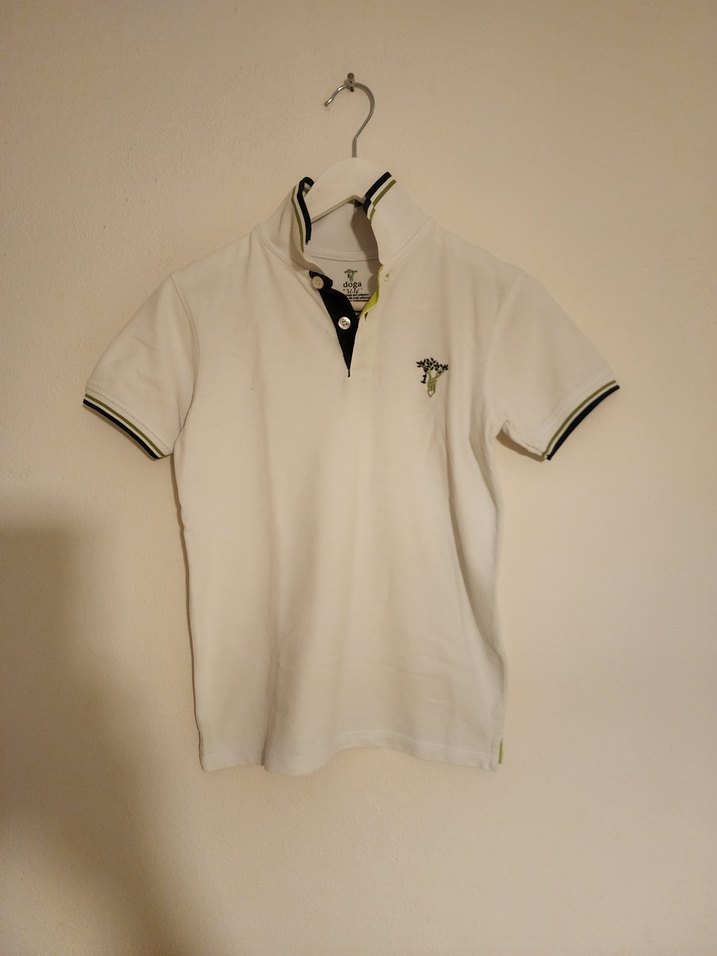 Pamuklu, düğmeli yakalı ve kısa kollu beyaz polo yaka Doğa Koleji tişörtü.