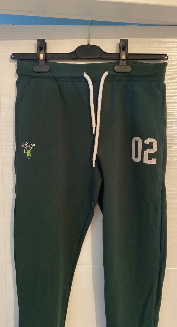 Erkekler için koyu yeşil, bol kesim ve normal boyda, baskılı detaylı, yanları fermuarlı eşofman altı. Yumuşak ve sıcak kumaştan, spor ve günlük kullanıma uygundur. Belde bağcıklıdır, bacakta '02' baskısı bulunur. ♂️