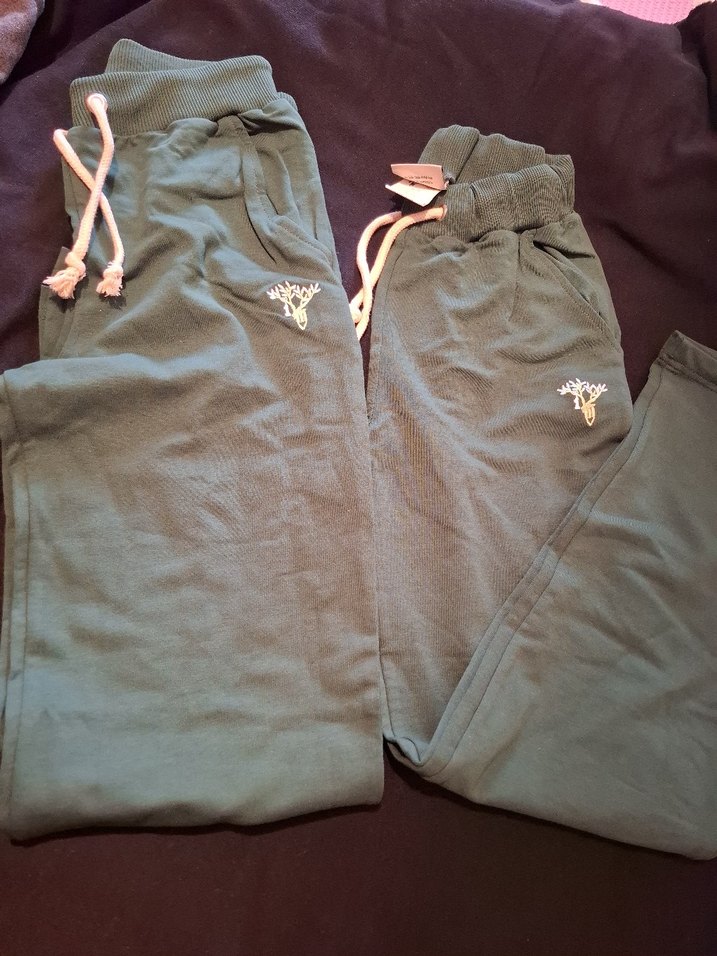 Doğa Koleji kıyafeti. İkisi de Sıfır ürün Koyu yeşil renkte bedenleri görselde yazıyor
