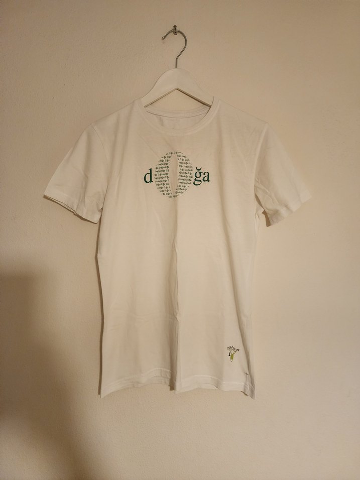 Kısa kollu ve bisiklet yakalı beyaz Doğa Koleji tişört.