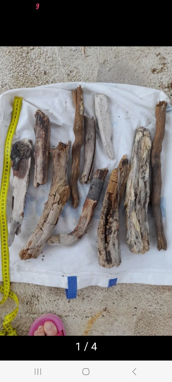 Çeşitli şekil ve boyutlarda doğal bej ve gri ahşap lodos dalları