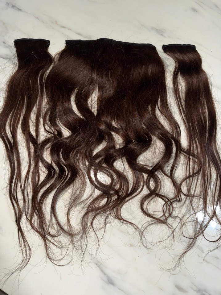 Koyu kahverengi, ipeksi dokulu, elastik özellikli dalgalı saç aksesuarı, sade ve bohem tarz için uygundur. 60cm doğal saç İade yok.