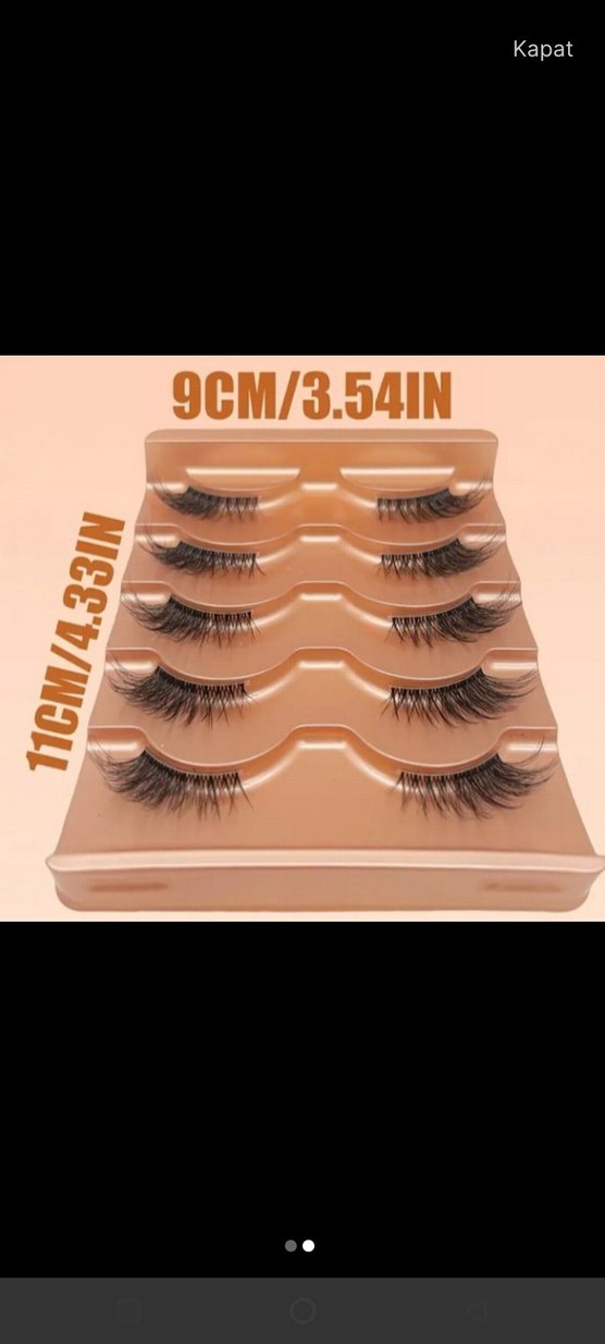 Bu sette 9 cm ve 11 cm uzunluklarında, koyu tonlarda bej renk takma kirpikler bulunur. Doğal ama belirgin bir görünüm sağlar. ️