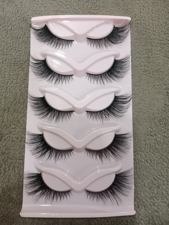 Beş çift doğal görünümlü takma kirpik, beyaz tutucuda. Kirpikler hafif ve dolgun yapıda, gözleri belirginleştirir. ️