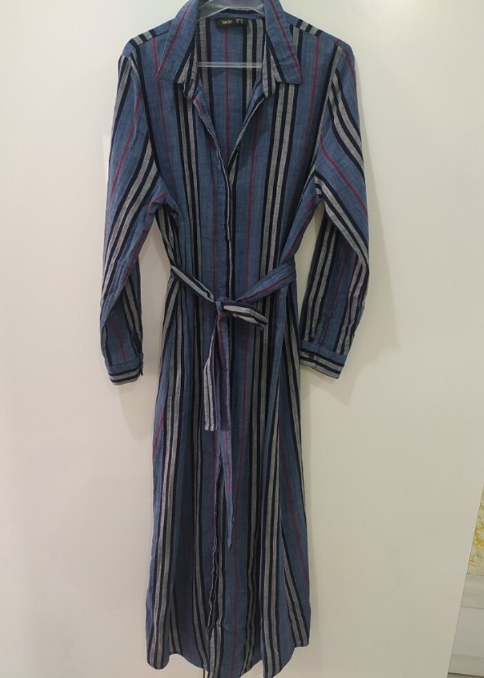 Doğal kumaşlı pamuklu elbise. Bikaç sefer kısa süreli giyildi sadece yeniden farkı yok kesinlikle. Düğmeleri sabitlendi üstten 3 düğme hariç açılıyordu çünkü. Üstten rahatlıkla giyilebilir boy:140, koltuk altı 52