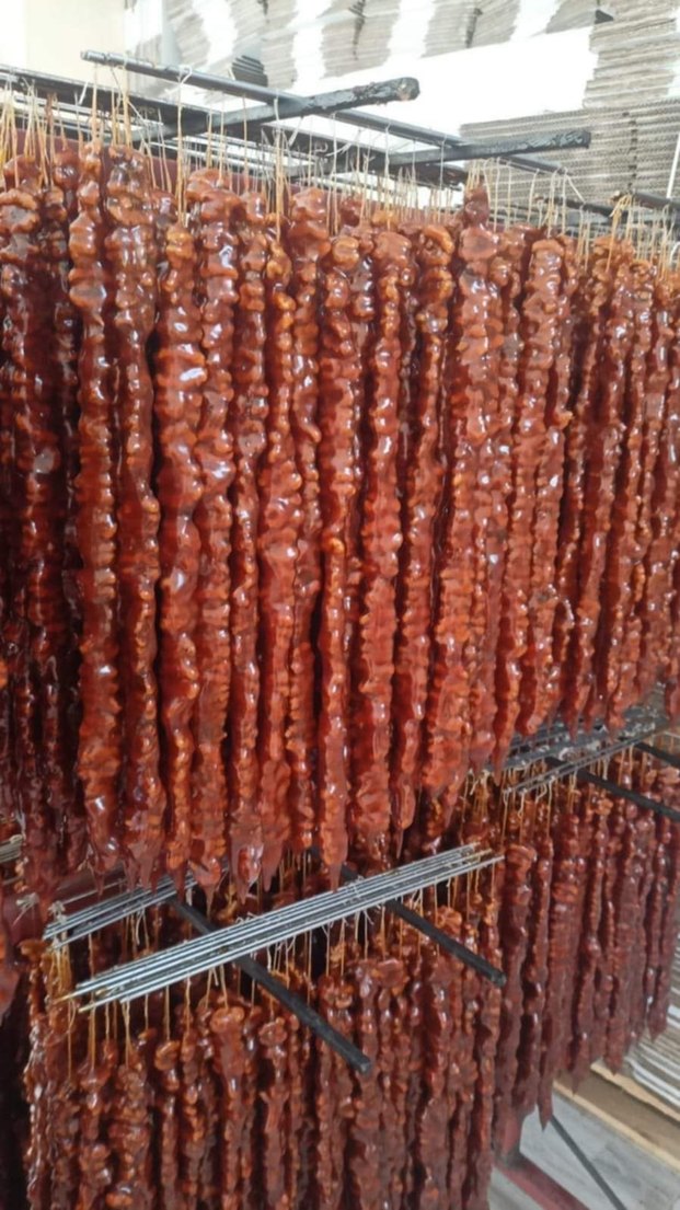 Doğal malzemelerden yapılmış, kurutulmuş Cevızlı sucuk Çiğneme için uygun, doğal ve sağlıklı atıştırmalıklar .