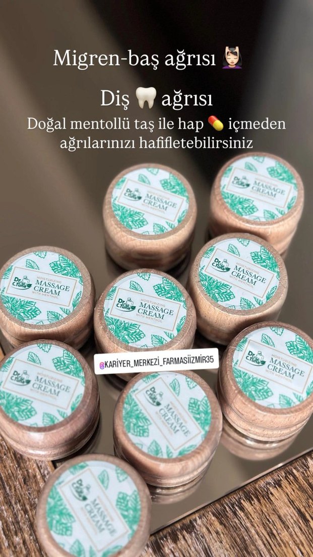 Migren ve diş ağrılarını hap kullanmadan hafifletmeye yardımcı doğal mentollü krem. Rahatlatıcı ve kolay uygulanır.