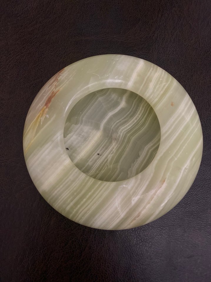 Doğal oniks taşından el işçiliğiyle üretilmiş dekoratif kül tablası Her biri doğanın kendine özgü desenlerini taşıyan bu kül tablaları, tamamen doğal oniks taşından üretilmiştir. Hiçbir ürün bir diğerinin aynısı değildir. Boyutlar: Çap: 12 cm | Yükseklik: 3 cm 1 KÜLLÜK FİYATI / İADE YOKTUR Zarif formu ile evinizde, ofisinizde veya bahçenizde hem kullanışlı hem dekoratif bir obje olarak yer alır #kültablası #evdekor #hediye #doğaltaş