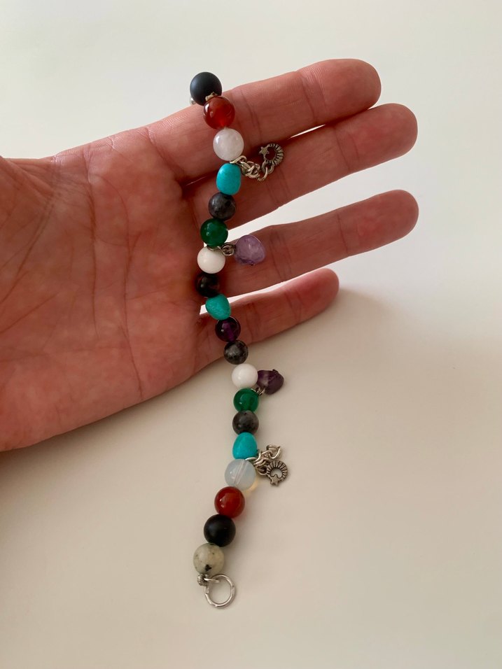 Bütün taşlar doğal (ametist, firuze, akik vs), kilit 925 ayar damgalı gümüş, diğer ek parçalar bijuteri