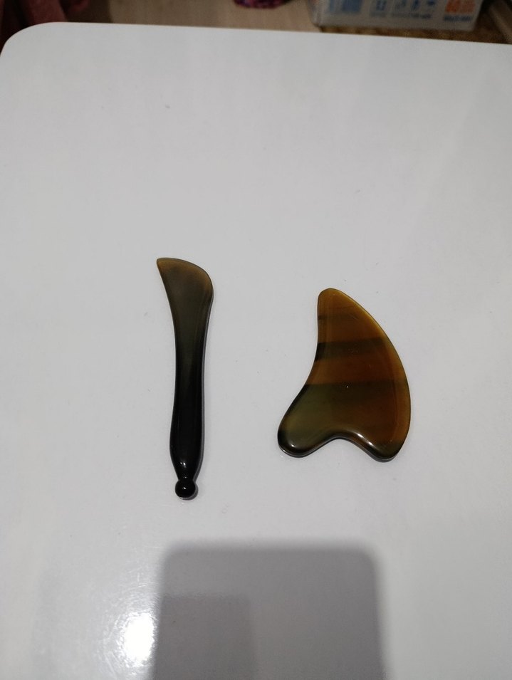 Cilt dolaşımını artıran ve rahatlama sağlayan doğal taş Gua Sha yüz masaj aletleri. İki farklı şekil ile çok yönlü kullanım sağlar.