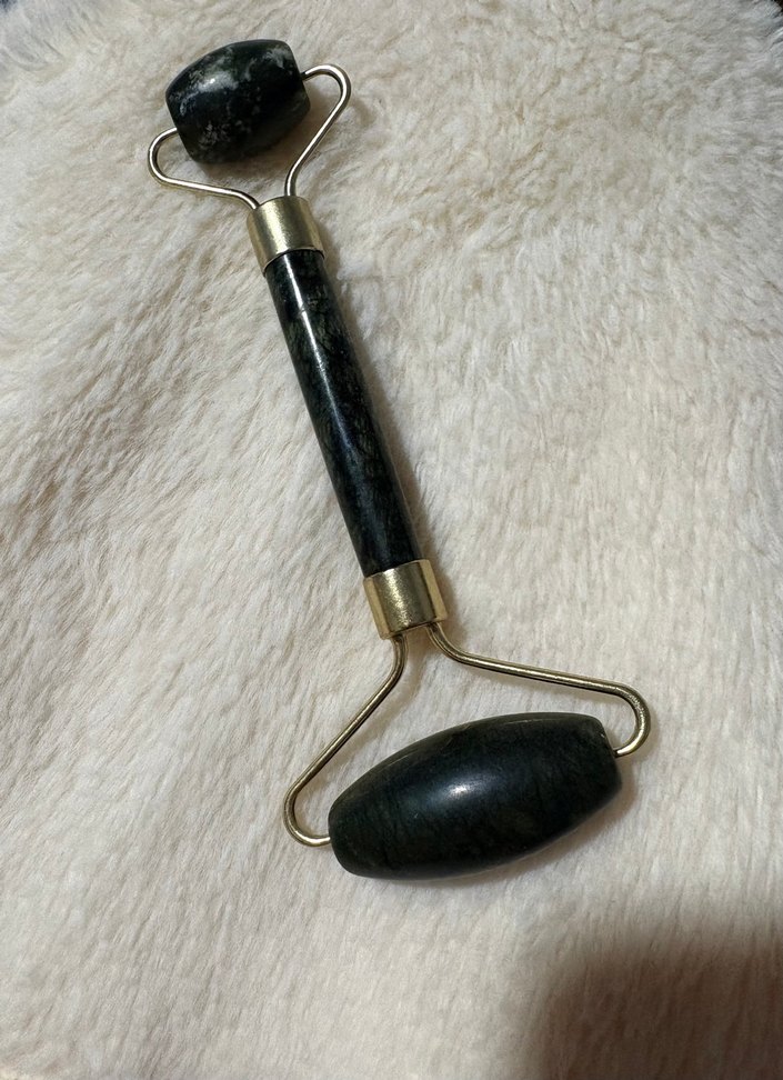 Doğal taşlı yüz masaj aleti, cildi canlandırmak ve rahatlatmak için iki farklı boyutta yuvarlak uçlara sahiptir.