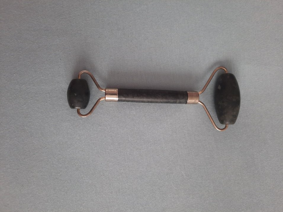 Cilt bakımı ve rahatlama için iki rulolu doğal taş yüz masaj aleti.