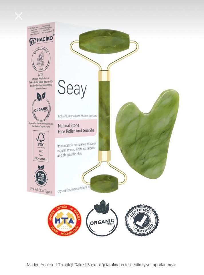 Doğal taşlardan üretilmiş yüz roller ve guasha seti, cildi sıkılaştırır, rahatlatır ve şekillendirir. Organik sertifikalıdır. !$₺@nbu| €|d€n