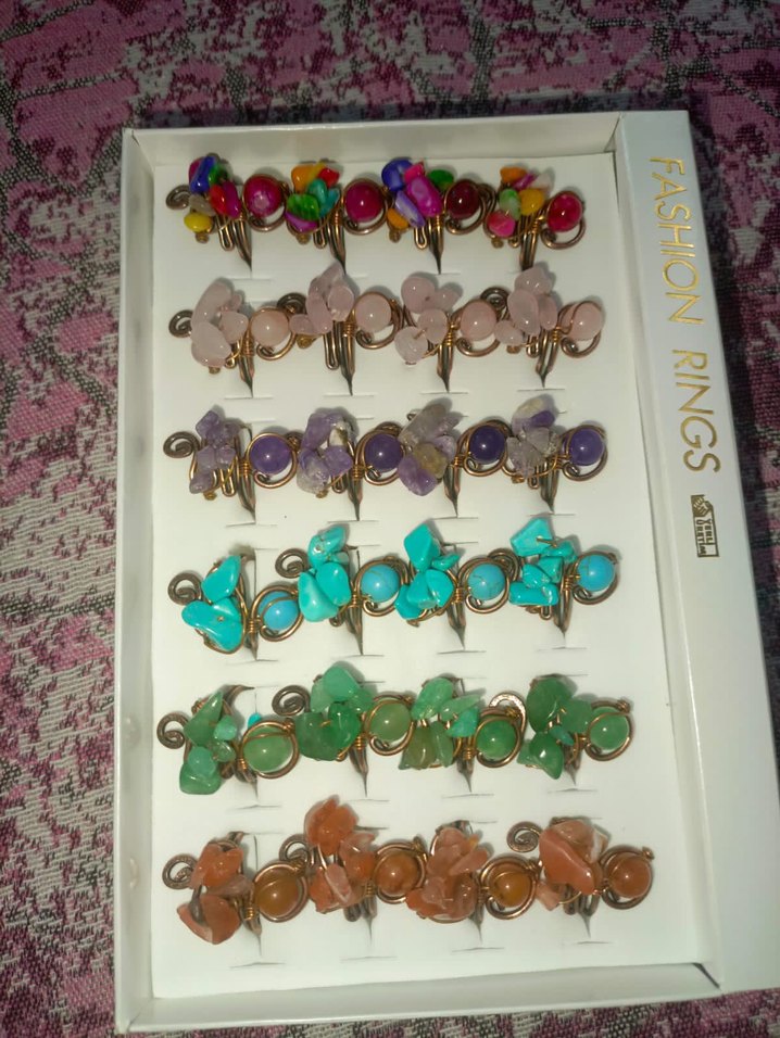 Doğal taşlı Çiçek desenli, renkli boncuklarla süslenmiş, Bakır telle tasarlanmış.bohem tarzda kadın yüzükleri. Vintage ve hippie stillerine uygun, düğünler için ideal. Kendinden açılır kapanır tarzda. Sevgililer günü için özel hediye olarak kutusu ile birlikte gönderilecektir. Orjinaldir.İstediginiz yüzüğü gönderim yapılacaktır.