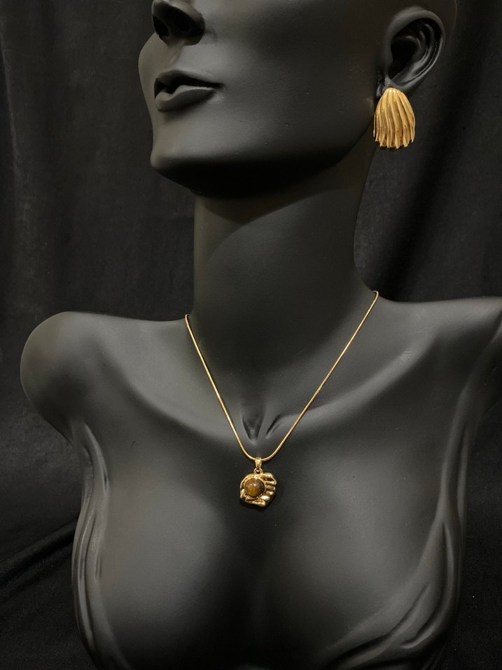 Doğal taşlı Çelik Kolye