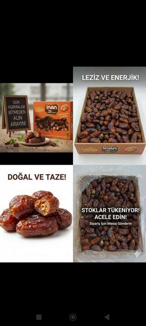 Doğal ve taze hurmalar koyu kahverengi ambalajda sunulmaktadır. Leziz ve enerjik hurmalar, stoklar tükenmeden sipariş verilebilir.